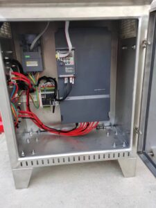 In some regions with strong sandstorms, such as Middle Eastern countries, some customers want to customize an additional inverter box. It can be manually or automatically operated remotely. This box and machine can be separated by a distance of 10-20 meters. The independent inverter box has the benefits of wind, sand, and corrosion resistance.